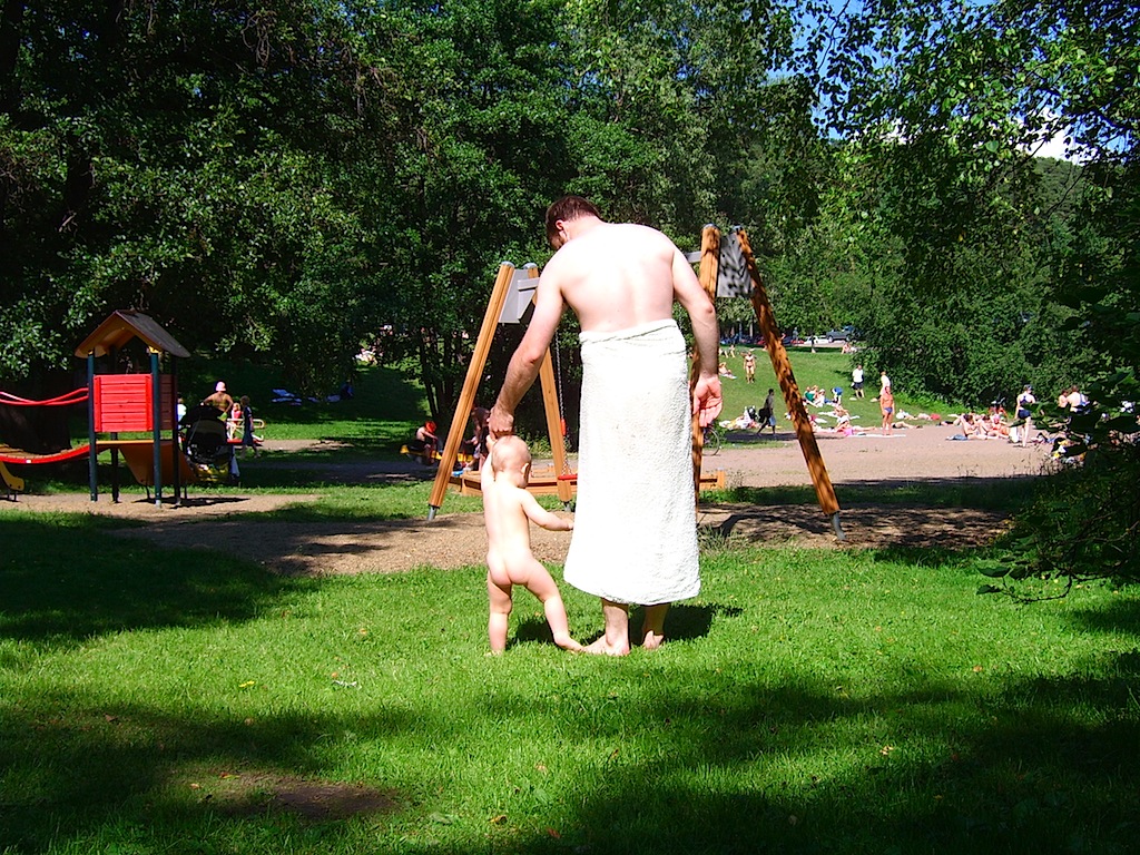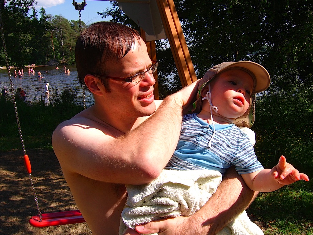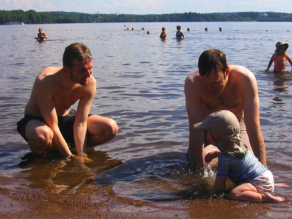 Pyynikillä oli heinäkuussa tosi kuumat oltavat. Käytiin monta kertaa uimassa Rosendahlin rannassa. Paikalla oli myös ”norjalainen”, joka oli meillä kylässä ja joka puhui ihan hassua kieltä. Uiminen oli todella mukavaa, eikä olisi yhtään huvittanut lähteä pois.