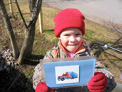 Aika paljon piti tehdä kaikkia tehtäviä. Siellä piti hyppiä yhdellä jalalla ja piirtää tätin piirtämän mallin mukaan. Kynäotetta täytyy kuulemma harjoitella – harmi etteivät testanneet hiirikättä. Sitten piti tunnistaa kuvasta, että onko siinä hiili/hiiri/viili tai sauva/vauva/hauva tai kana/kasa/kala. Ja palloa piti heittää tätille. Ja ottaa koppi. Ja piirtää oma kuva, mihin sanoin etten ossaa ja niinpä sain kirjoittaa oman nimen sen sijaan. Nämä kaikki meni ihan heittämällä. Eipä muuta. Lopuksi sain tarran.