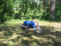 Olen minä nukahtanut hassuihin paikkoihin ennenkin (tästä puuttuu vielä kuvallista materiaalia, ne on isin puhelimessa). Tämä kivi on siis vain yksi muiden joukossa. Mutta hauska on tämäkin… vie jotenkin pohjaa sanonnalta ”tehdä jotain vähän aikaa vaikka aidan seipäässä”.