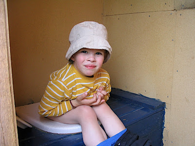 PuuCee. Kissakoskella käytiin kakalla ulkona. Vessassa oli paljon perhosia, joten se oli hyvä juttu.