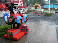 Kerran paistoi aurinko. Päätimme lähteä vauhtipuistoon. Haimme Liljan mukaan ja suuntasimme Hietasaareen. Kuten niin monesti tänä kesänä, sää vaihtui hetkessä helteestä ukkosmyrskyksi. No, me syötiin vauhtipuiston pihamökissä ensin eväät, sitten kahviossa jäätelöt ja käytiin vähän pomppimassa pomppulinnassa, kun siinä oli sateensuojaksi katto. Sitten mentiin kotiin, josta pihalta löytyi lunta! Tai oikeastaan rakeita. Sitten me leikittiin vähän hiekkalaatikolla ja pelleiltiin meccano-auton renkailla. Oli tosi kiva vauhtipuisto-päivä!