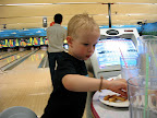 Käytiin keilaamassa. Keilaus oli Eelin kirjassa ihan kärkipäässä niitä juttuja, joita täällä on tehty. Reissu oli haasteellinen – meitä oli 8 aikuista ja kuusi lasta, joista kolme oli kykenemättömiä seisomaan paikallaan kahta sekuntia pidempään, pyydystivät palloja ja juoksivat pää märkänä pitkin keilahallia. Kolme muuta oli vähän rauhallisempia. Silti korvat soi kotiin tullessa. Elämyksiä…