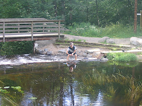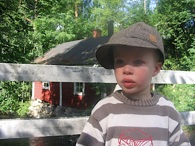 Mikkelissä käytiin kävelemässä luontopolulla. Heti siinä alussa oli pieni koskipaikka ja sen yli menevä silta. Sillalla tuuli puhautti vappurupelista rupelin irti (jostain syystä siinä oli erillinen varsi ja rupeliosa, jotka saattoivat irrota toisistaan). Onneksi Sirpa reagoi nopeasti, kahlasi henkensä kaupalla koskeen ja pelasti rupelin. Pidinkin siitä tosi tiukasti kiinni sen jälkeen. Mutta vielä pitkään jälkeenpäin meinasi itkettää koko ajatus. Että siis rupeli olisi mennyt joen mukana (Mikkelissä sanovat näitä oja/puro-kategorian vesiuomia jostain syystä joiksi)