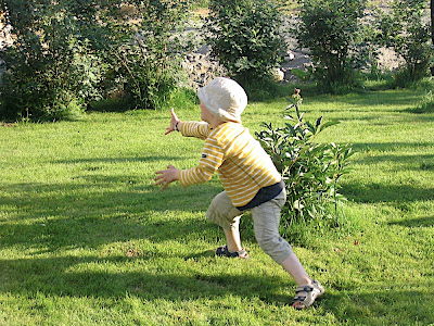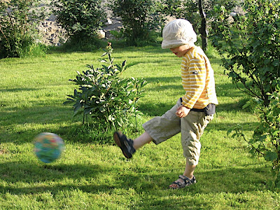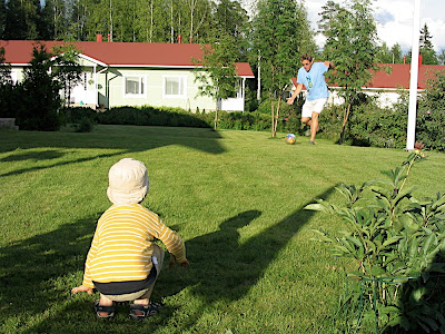 Mikkelistä minusta löytyi uutta lahjakuutta, niinku kaikkien entisten lisäksi (toim. huom. Eelillä on varsin hyvä itsetunto). Pelattiin vaarin kanssa pihalla potkupalloa ja osoittauduin hämmästyttäväksi liimanäpiksi. Yksikään pallo ei mennyt maaliin, kun vahdin maalia. Ja jos menivätkin niin huusin kovaan ääneen, että ”yli meni”. Oliver Kahn, Iker Casillas ja Edwin van der Sar, hall of fame awaits.