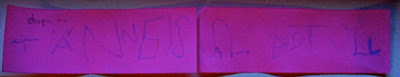 Olen siis oppinut kirjoittamaan. Se on helppoa, mietitään vaan että miltä sana kuulostaa hitaasti sanottuna ja kirjoitetaan se paperille. Hankalampi juttu on muistaa, että pitää kirjoittaa kirjaimet järjestyksessä vasemmalta oikealle. Tämmöisiä juttuja olen kirjoitellut: