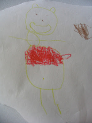 Kuten sanottu, Eelistä on tullut taitava piirtäjä ihan huomaamatta. Aikaisimmista abstrakteista ja hyvin tulkinnanvaraisista teoksista on tullut selvästi havaittavia hahmoja ja tapahtumia. Tämän Nalle Puhin Eeli piirsi katsottuaan Nasun Suuren elokuvan. Elokuvan päätyttyä hän tuumasi, että nyt haluan piirtää nallen. Sitten hän määrätietoisesti pyysi paperia sekä keltaisen ja punaisen värin. Niin syntyi Nalle Puh. Samalla tavalla huomaamatta Eeli on alkanut kirjoittaa sanoja ja pidempiäkin lauseita. Toissa päivänä hän piirsi luolan ja kirjoitti viereen ”luola” ihan itse. Eilen hän kirjoitti huoneemme oveen lapun, jossa luki ”TÄNNEISAATULLA”. Se oli tarkoitettu kuulemma Silolle, joka jahtaa Eeliä joskus huoneeseemme (kun Eeli juoksee houkuttelevasti itse edellä).