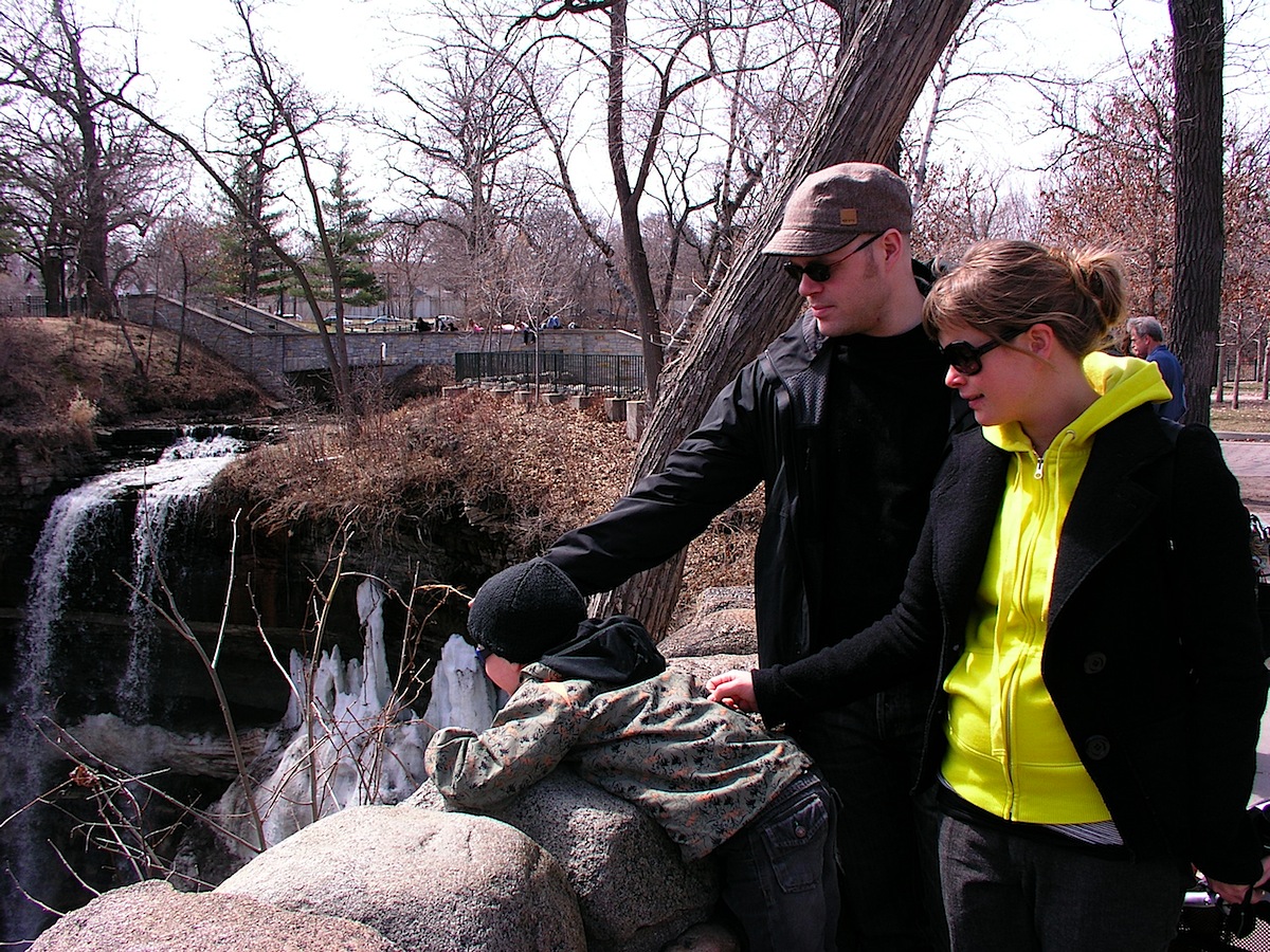Pääsiäissunnuntaina käytiin Minnehaha-vesiputouksilla nauttimassa auringonpaisteesta ja keväisestä ilmasta. Tuuli oli melko navakka ja luonto vielä kovin harmaa, mutta ilmassa oli jo lupaus keväästä. Me ei olla vieläkään varmoja, tarkoittaako ”minnehaha” putoavaa vettä vai nauravaa vettä.