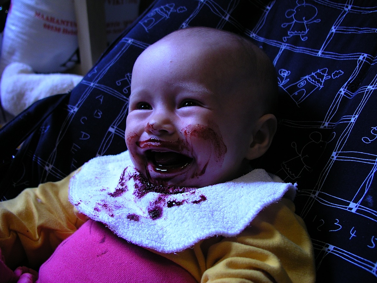 oh, this makes me laugh! looks kind of like eeli didn’t even like berries back then! … on the other hand, silla seems to be in love with them. she has one of the biggest smiles i think i’ve ever seen on a little baby!