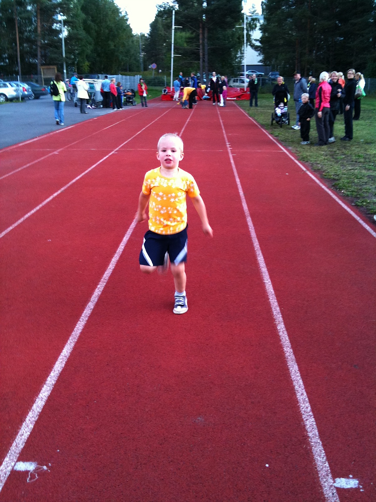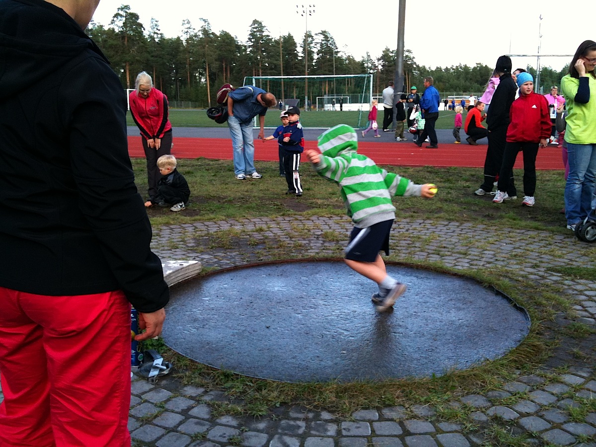 Our youngsters have a busy autumn ahead. Eeli goes to gymnastics (maybe two different ones) and swimming. Silla’s hobbies include music school, baby word art and colour baths. Last week we went to kids track’n’field event in the neighbourhood. Eeli participated in ball throwing and running.