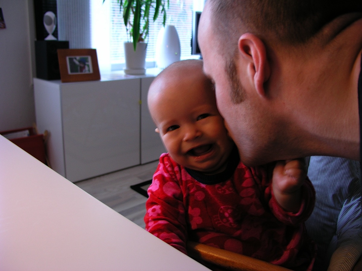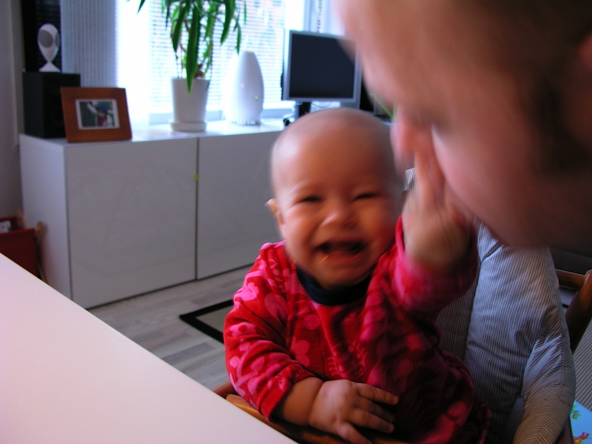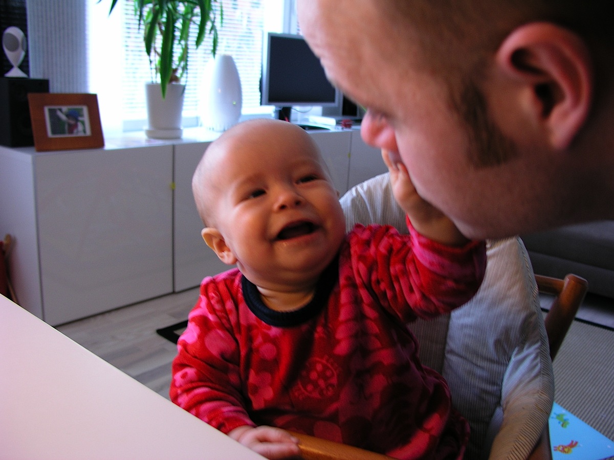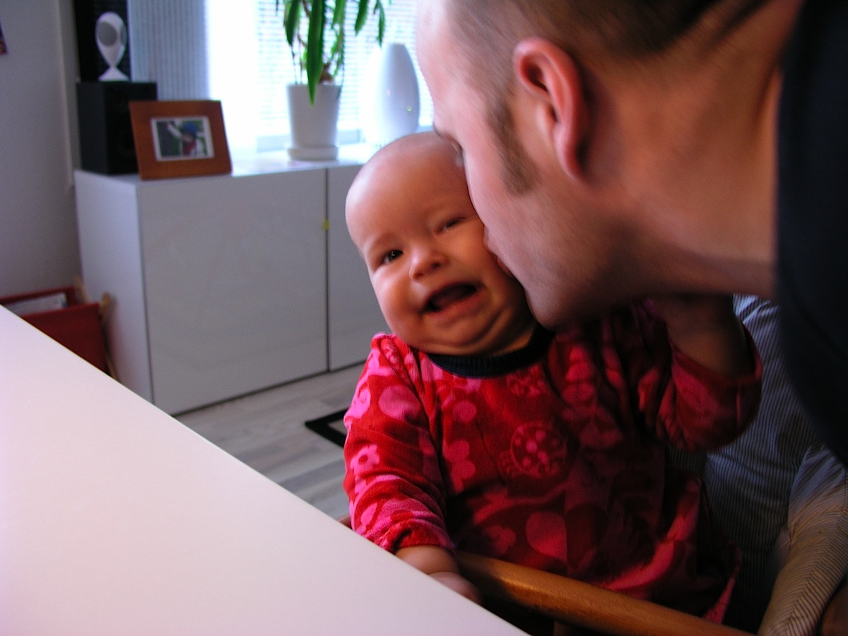Sitten, kesken ruisleivän murun metsästyksen portaita alas saapuu isi. Seuraava kuvasarja voisi olla toisinto mistä tahansa kerrasta kun Silla isin näkee: