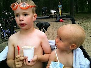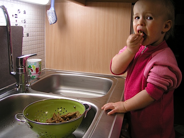 Meillä on kovin taitavia lapsia. Nuorempi osaa juoda maitoa ilman käsiä siten, että pullo lepäilee vatsan päällä. (Kyllä, hänellä on tällä hetkellä melko kookas kessi.) Eelillä taas on omat taitonsa. Sen sai isi huomata päivänä […]