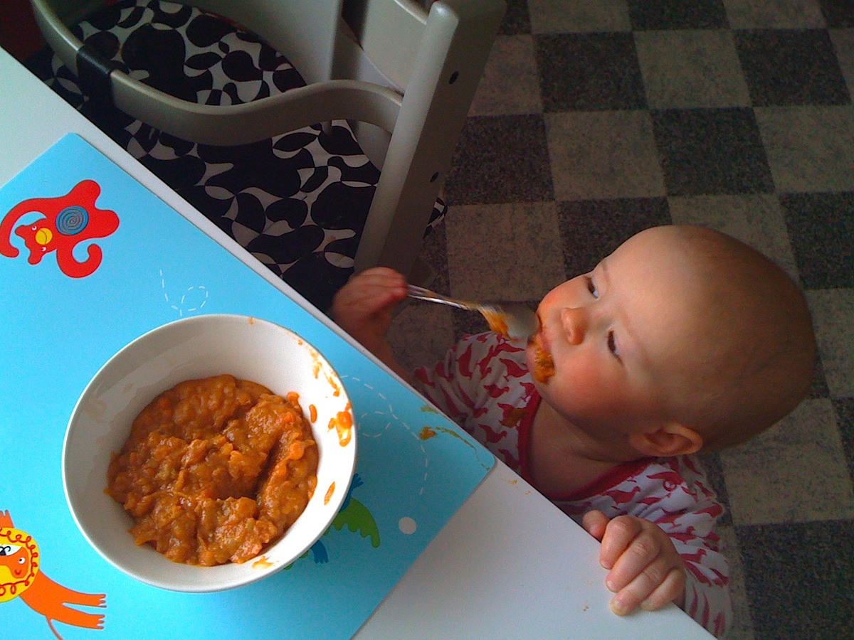Näin käy kun lapselle laitetaan ruoka jäähtymään ja sitten äiti lähtee käväisemään jossain. Oma-aloitteisia ovat, molemmat. Ja ulottuvia.