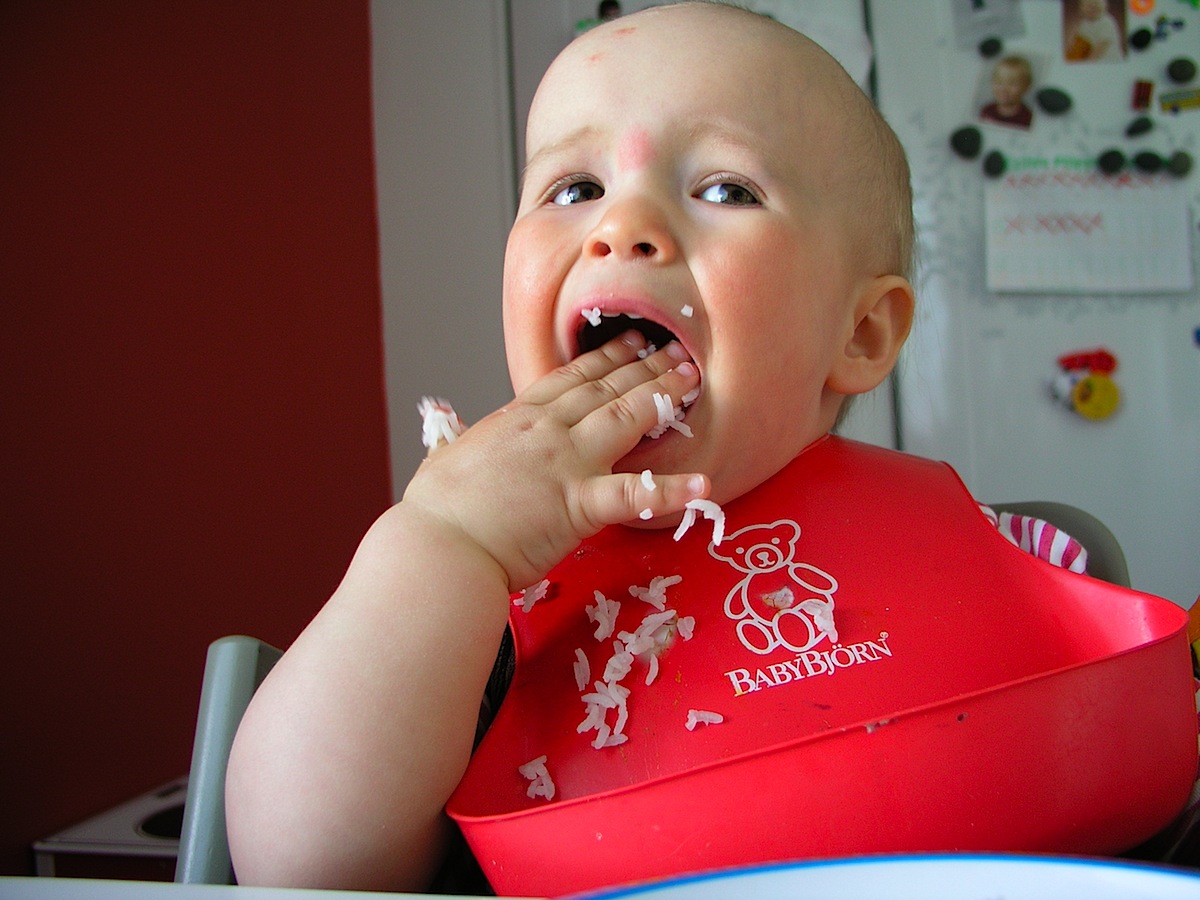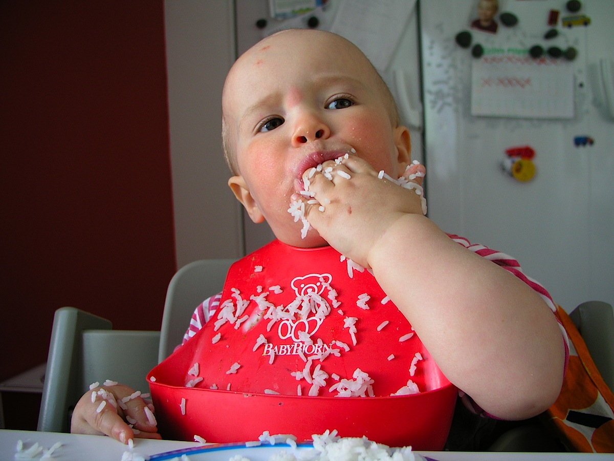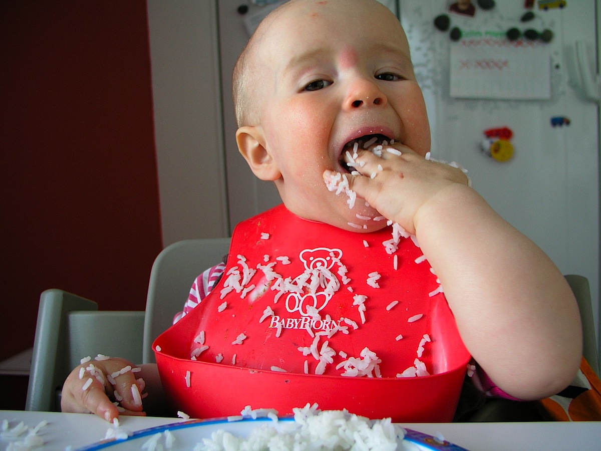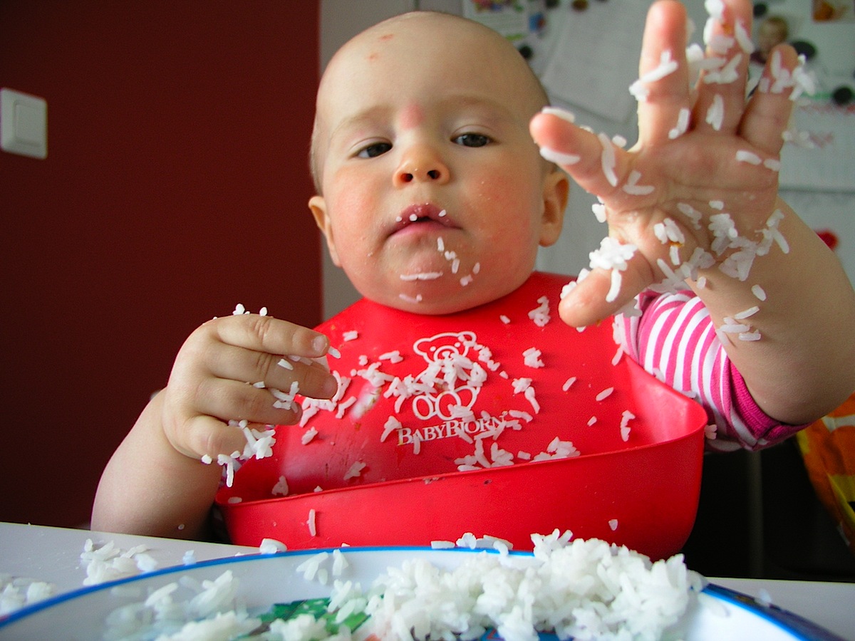 Silla likes rice. A lot. (She might have developed an addiction while in mom’s belly). She might even be considered a rice lover — it’s just that her mom and dad know one or two rice lovers so they are not sure if she quite meets the criteria… Anyways, the times she eats rice are very messy but oh, so quiet.