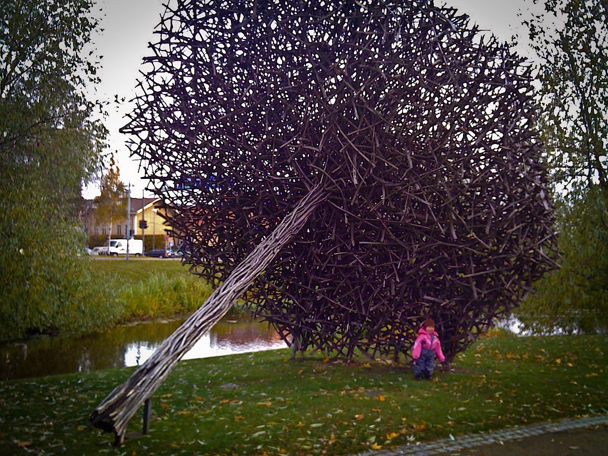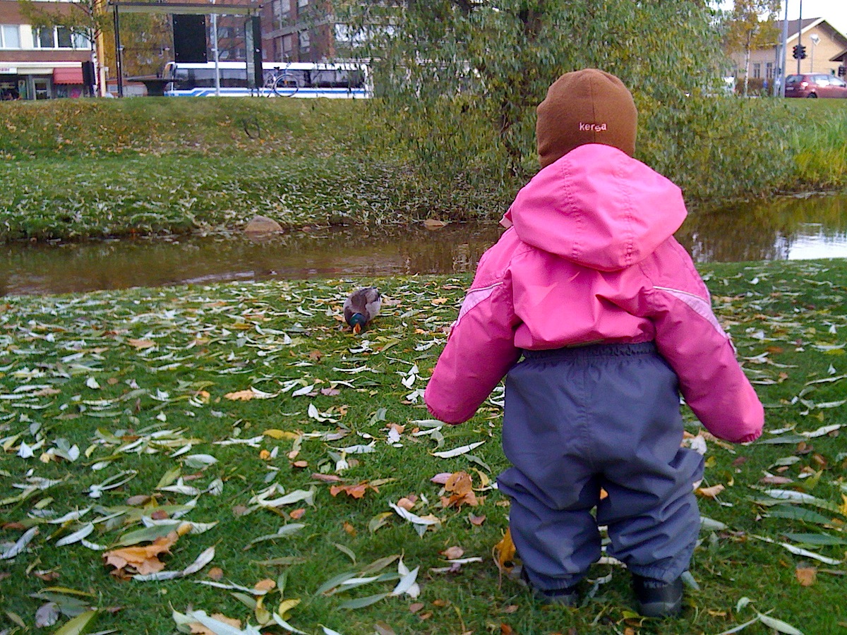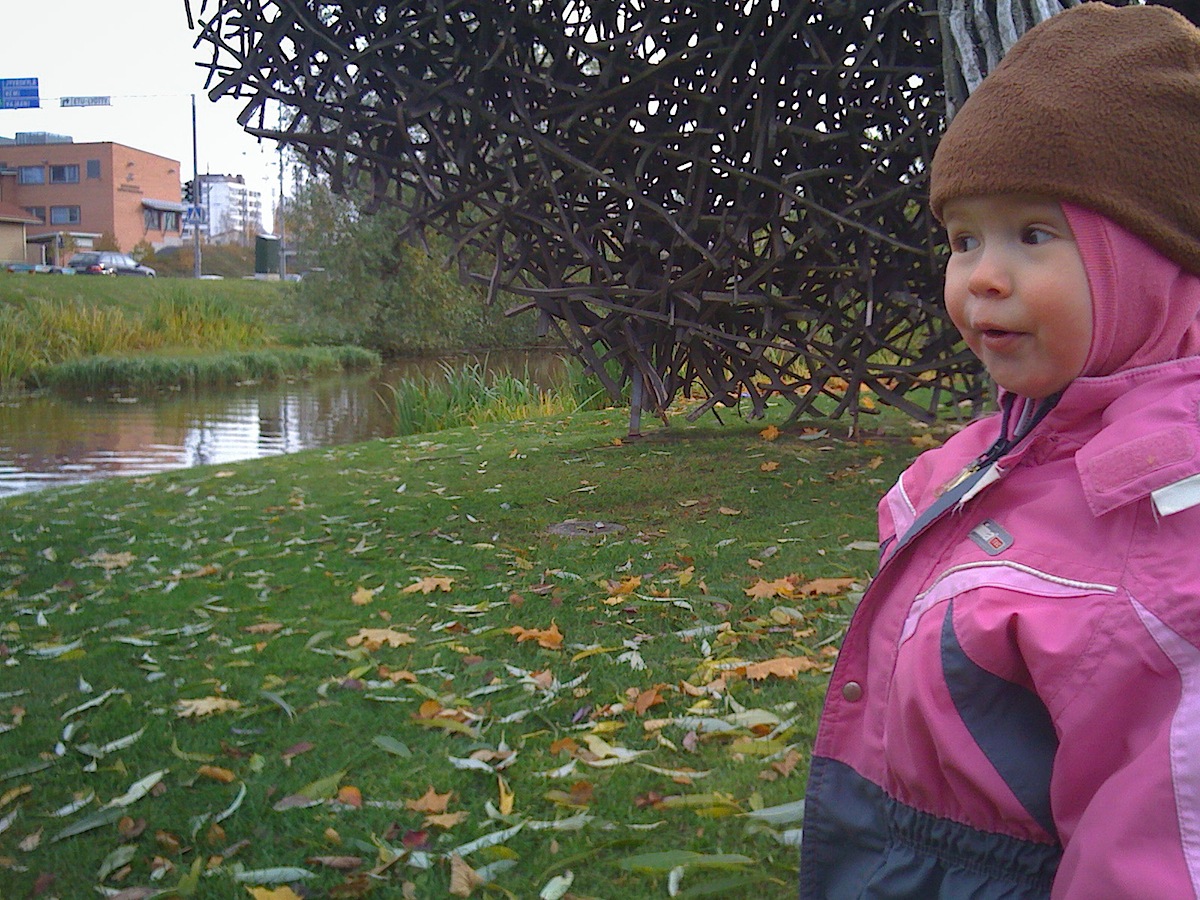 Ajamme isin kanssa bussilla monena päivänä. Busseja ei mene kovin usein, ja joskus niistä voi myöhästyä. Silloin täytyy yleensä odottaa. Odotusaikana tutustumme julkiseen taiteeseen, ja ankkoihin.