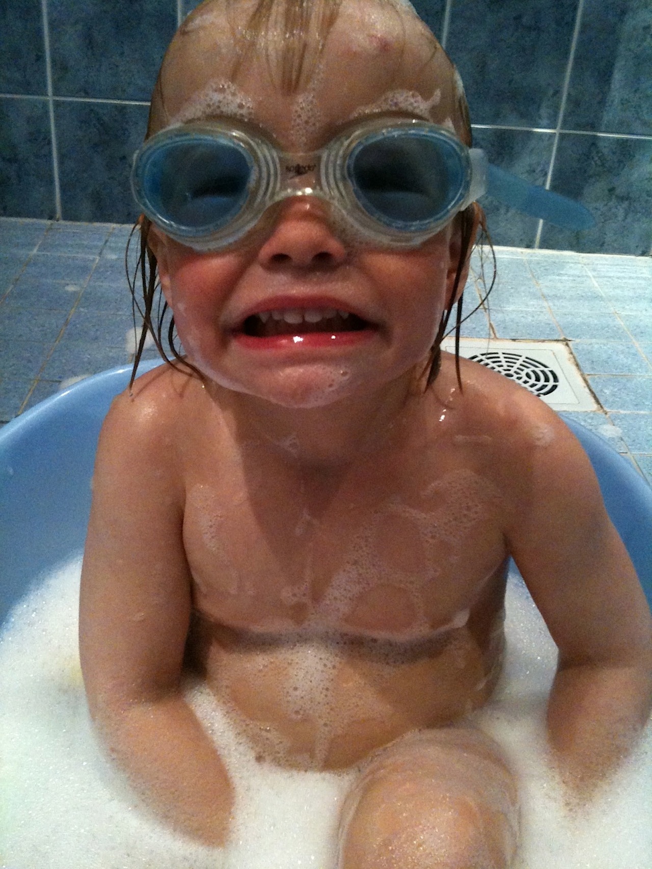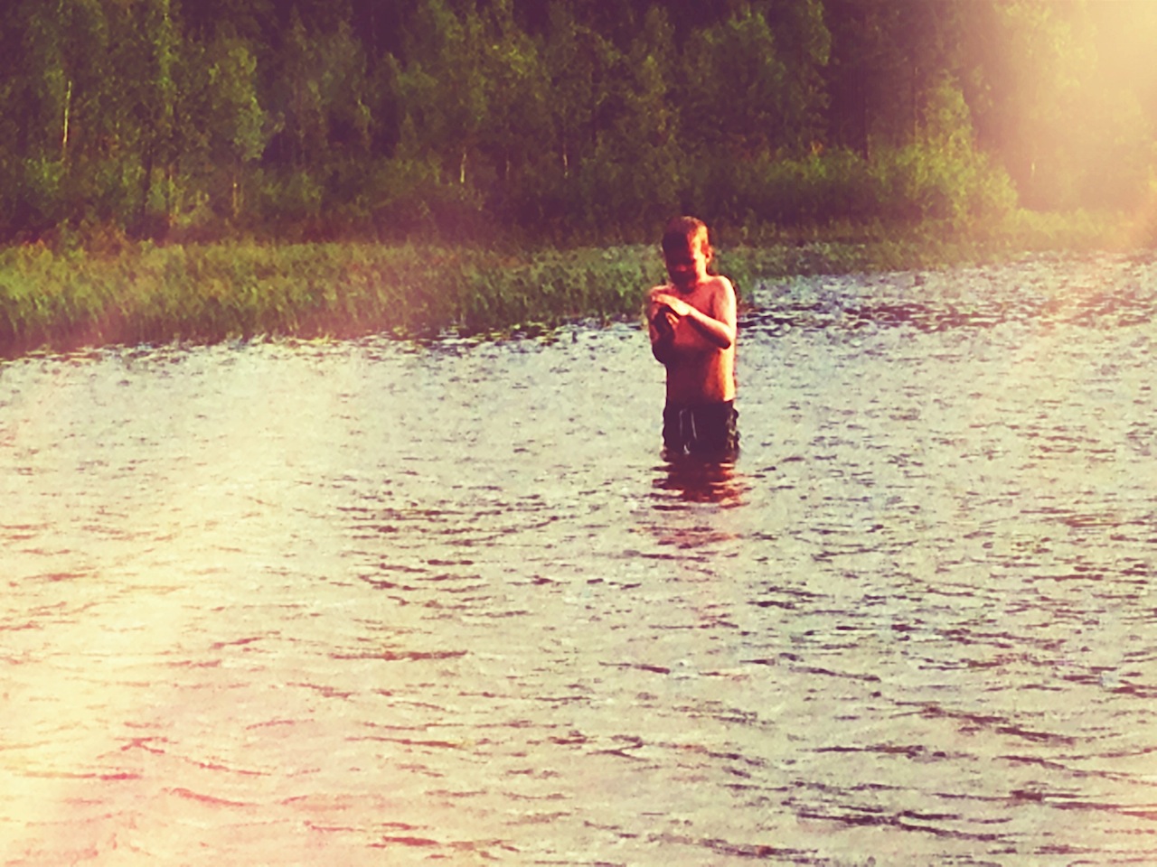 Eeli on halunnut uimaan koko päivän. Iskä on vakuutellut, että vesi on vielä liian kylmää. No, koko päivän tuskaisen ja malttamattoman odotuksen jälkeen viimein seitsemältä illalla – kun siis oli jo aika viileää – iskä antoi viimein periksi ja vei Eelin uimaan hyiseen Lämsänjärveen. Mutta nyt on hyvä, kun on saatu tämä homma ulos systeemistä. Silla avasi myös uimakauden, kylpyhuoneessa.
