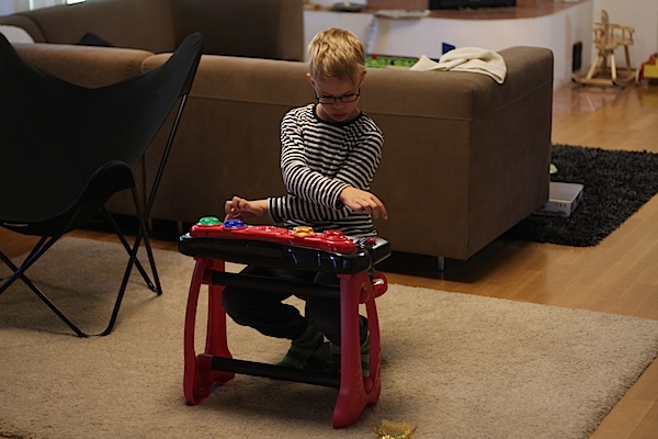 Laineet lahjoittivat meille hyvää hyvyyttään pikkuiset koskettimet. Erityisen hieno ominaisuus instrumentissa on se, että siitä lähtee automatiikalla erinäköisiä hauskoja midi-sävelmiä. Esimerkiksi kestosuosikiksi noussut ”Joulupukki matkaan jo käy”. Kiitos Laineet!