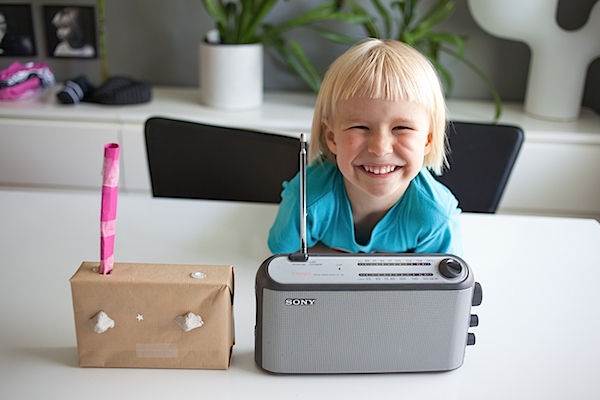 Nuhapäivän kunniaksi tein radion. Kattokaa, tässä on mun radio ja iskän radio. Kuin kaksi marjaa! Paitsi että mun antenni on pinkki ja sikäli parempi.