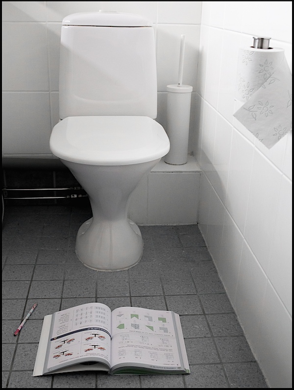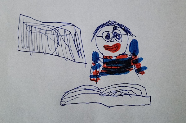 Sillan impressio Eelin lempipuuhasta: lukemassa matolla mahallaan, Aku Ankka -kansio edessä.