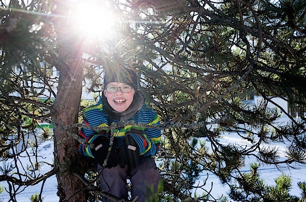 Tänään meillä kiivettiin puuhun. Huhuu!