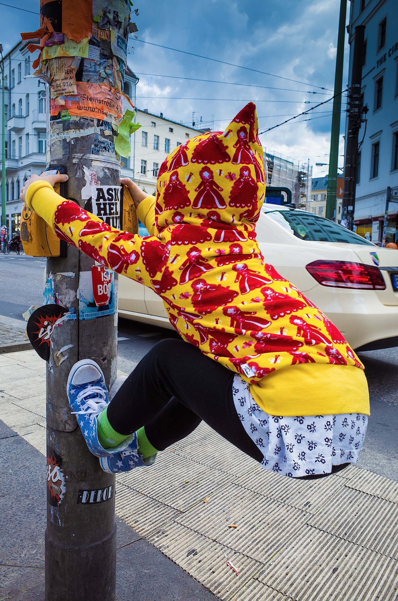 Hei! Olin vähän aikaa sitten Berliinissä. Siellä oli ollut ennen sellainen muuri, jonka yli ei kukaan päässyt. Tuossa alla olevassa kuvassa mää oon muurin molemmilla puolilla yhtä aikaa. Ja housutkin meinaa tippua!