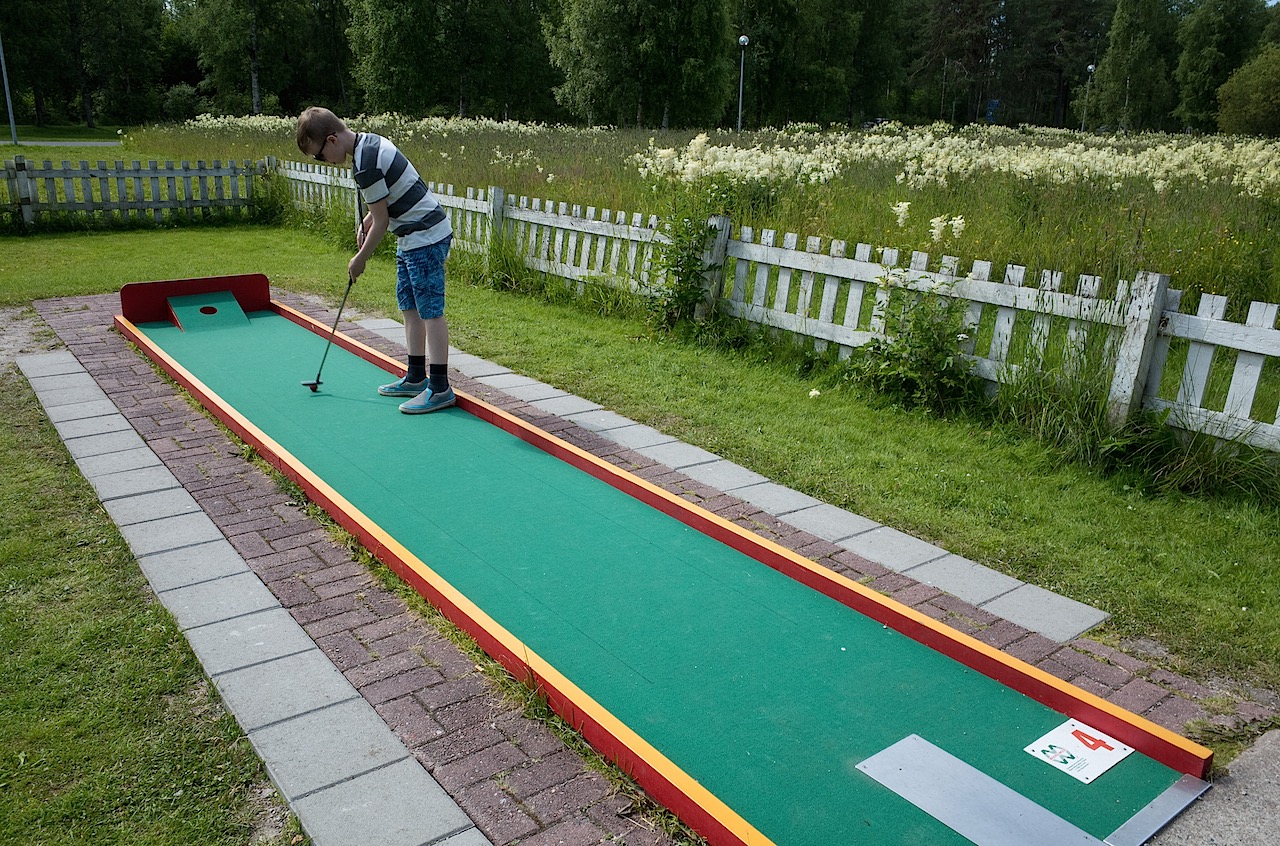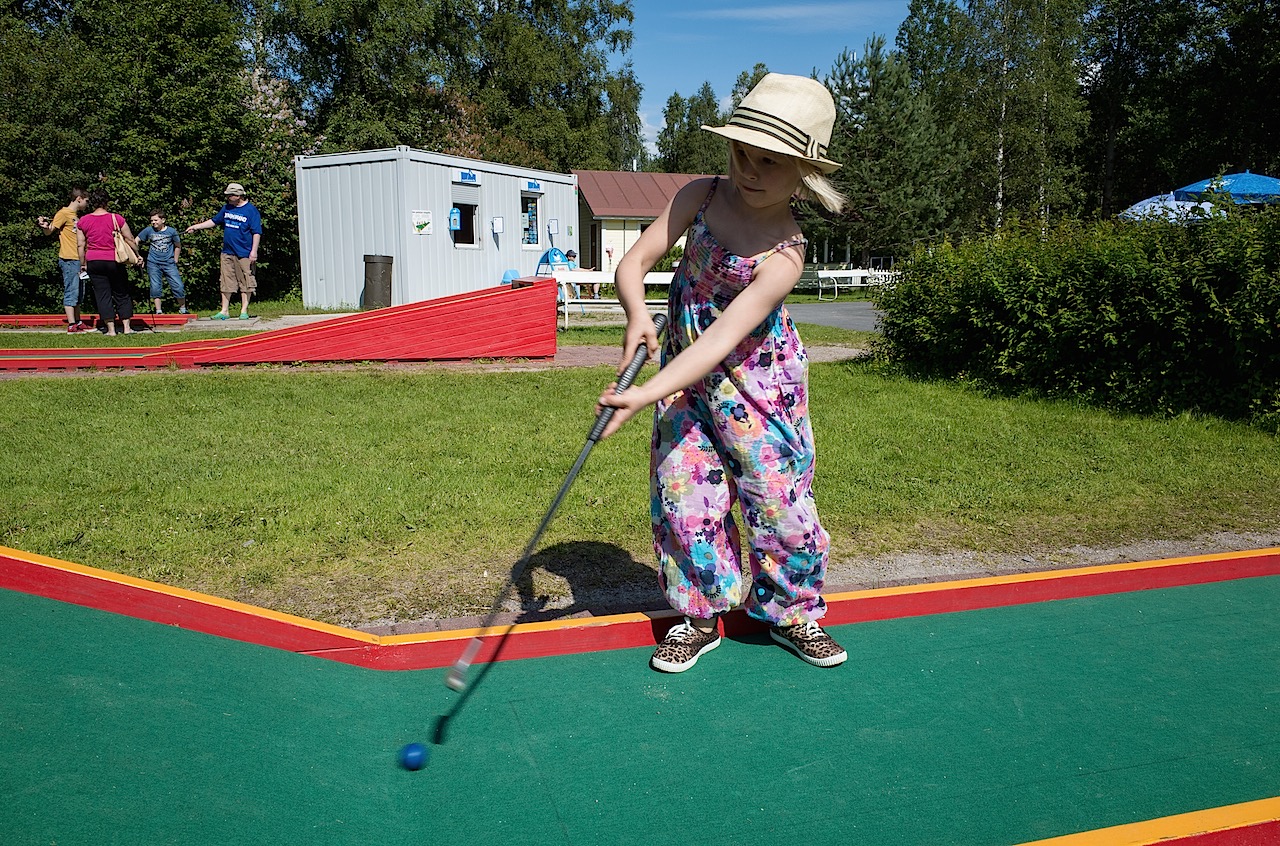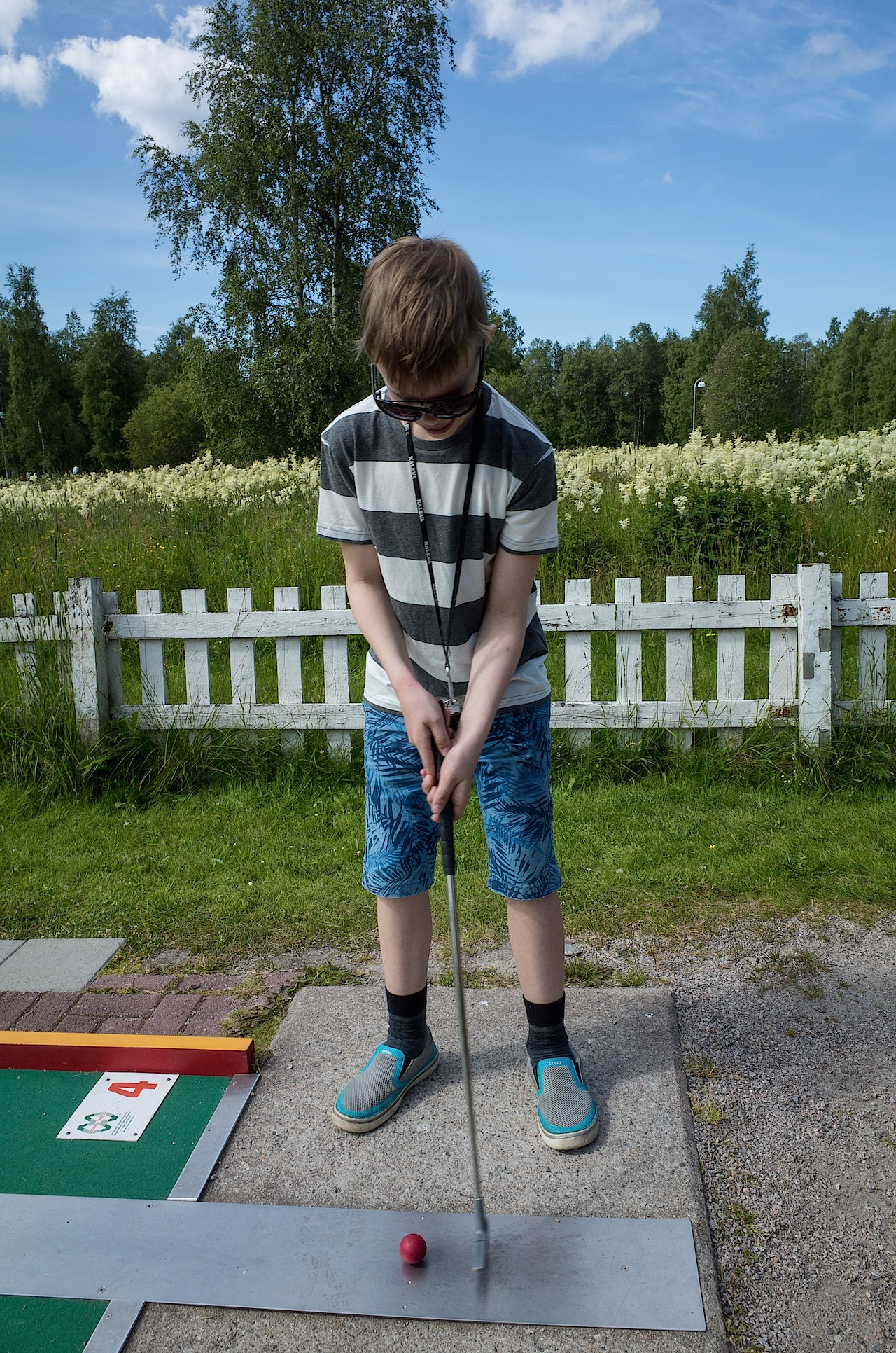 Mutta kun keli oli kohillaan, innostuttiin sieltä ajamaan suoraan Nallikariin pelaamaan minigolfia. Äiti oli minigolf-mestari, pikkuliini huijasi minkä kerkesi ja Eelillä tuli hepuli. Aivan mukava päivä!